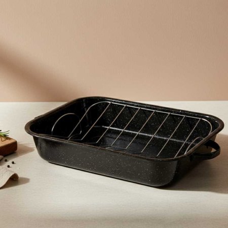 صينية تحميص مع شبكة شواء مطلية بالمينا (Enamel) 45×31 سم