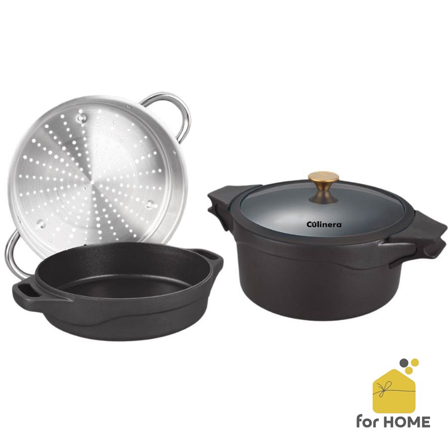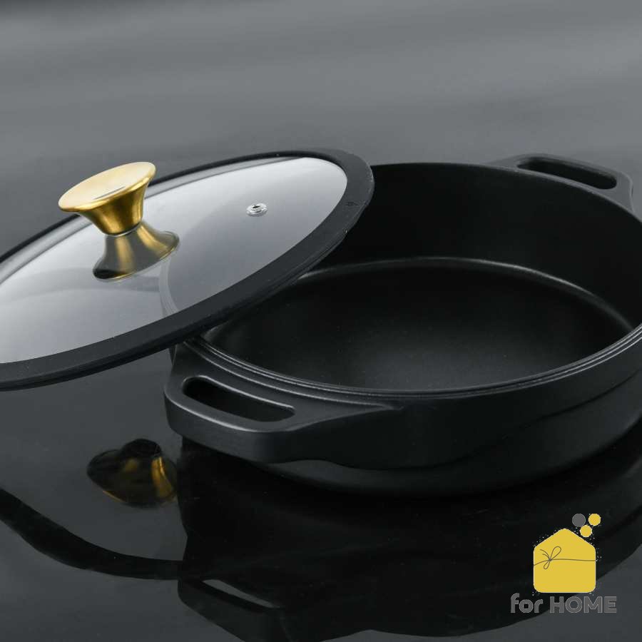طقم 4 قطع من الألومنيوم الصب 28سم متعدد الأغراض - اسود Retro