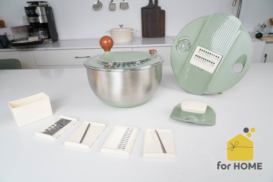 مع الوعاء السحري، يمكنكِ تنظيف وتجفيف الخس والخضراوات بسهولة، وبعد إزالة المصفاة وإعادة الغطاء، يتحول الوعاء إلى ماندولين قوي وحاد. تصميمه الذكي والعملي يوفر المساحة ويُسهّل تحضير الطعام. مثالي لتحديث مطبخكِ بأداة عالية الجودة وفعالة!