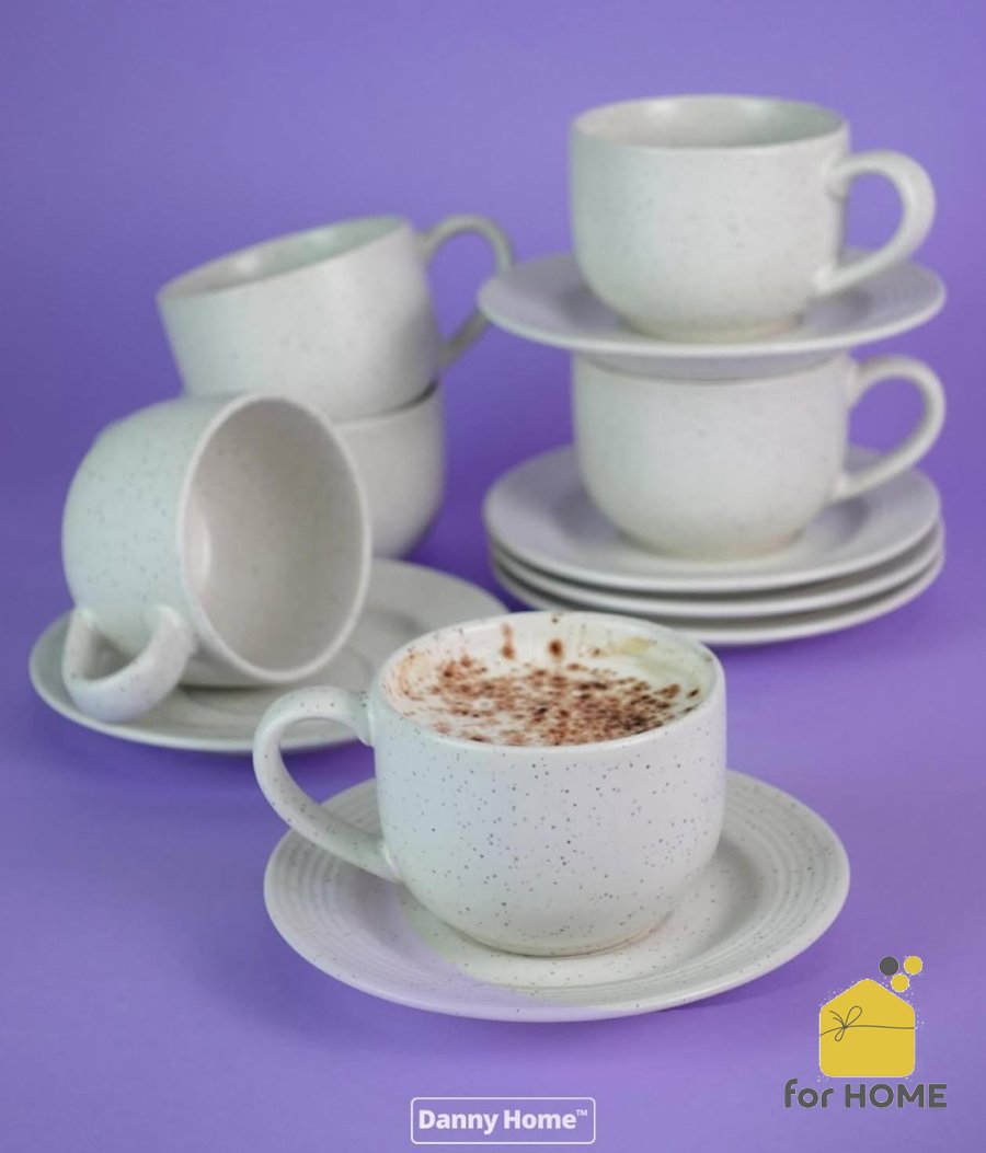 طقم 6 فناجين قهوة ابيض منقط اسود